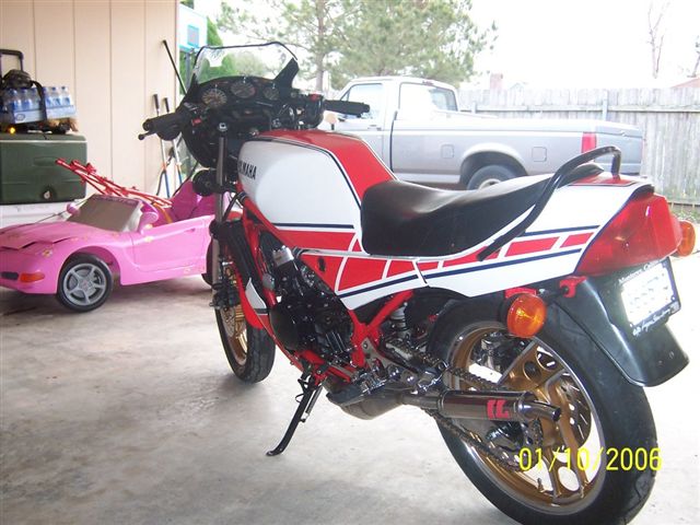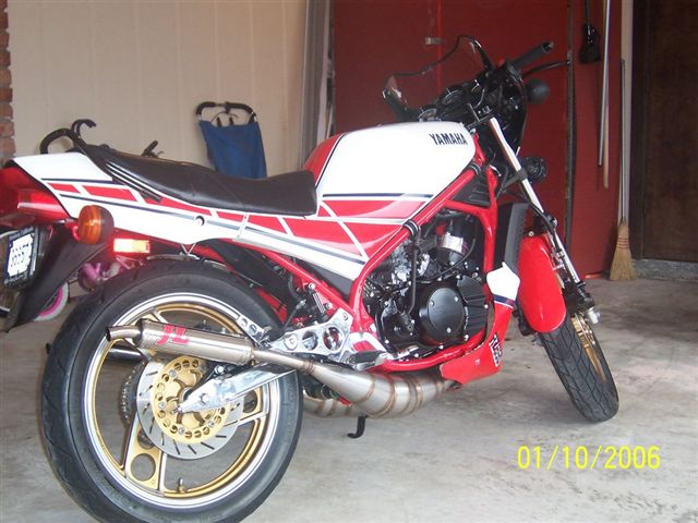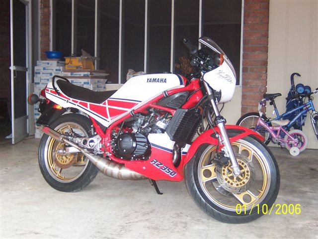 More pictures below (scroll down) Mark, of Friendly Yamaha Honda in Baton Rouge, Louisiana, has built one of the nicest Yamahas in the country. You will find this extremely clean restored RZ sitting on a turntable in the showroom floor.Note: All artwork is paint with the only sticker being Kenny Roberts signature.