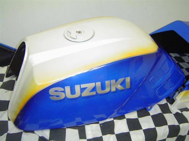 Here is Dave Garner (AKA "Fast G") and his next strip bike. The bike is an 1150 Suzuki with a stretched Beasley tail section and GSXR front fender. It's running mid 8's without the bottle on. Lowers, dash and assembled pics to come. Colors used: