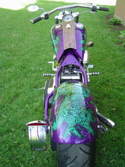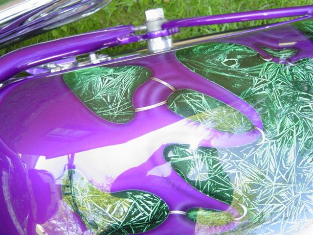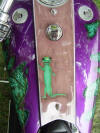 You will find several of Lance's rides throughout this site. Lance is life long friend (good to have ).This is his latest project, 250 Series Chopper. Recent additions to this bike have been the Geico Lizard added to the airbrushed wood grain dash.