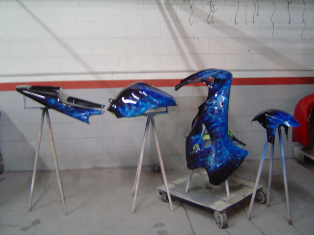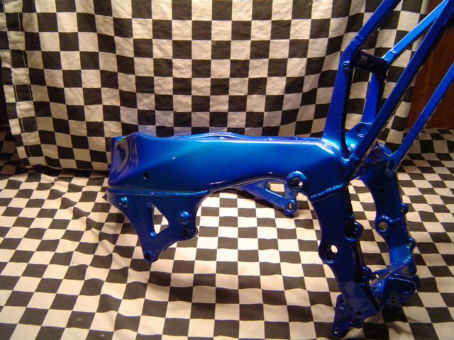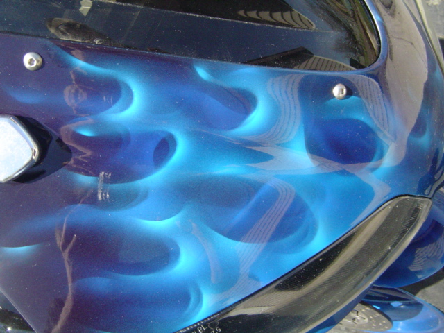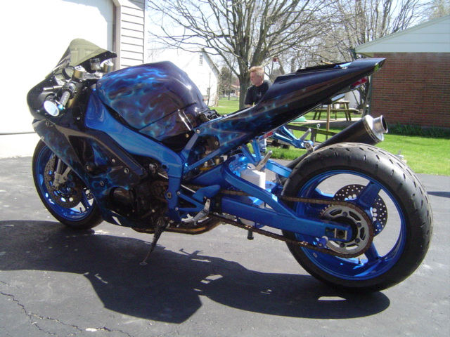 Work being done: -8" over on swing arm, with bottle bracket, Lowering link, Air shifter tank. - McIntosh -Ported head, valve job. -S & K Racing -Yoshimura oversized cams and exauhst. - Dynojet jet kit. - Air Shifter -Powder Coating. -Just Chrome It -Frame, Swing arm, Foot peg brackets, Wheels. -Nitrous Express Wet system. - Speigler brakelines and banjos - LSL frame sliders and steering dampener - All other work done by Miles McCall. - Paint by MCCALLCOLORS.