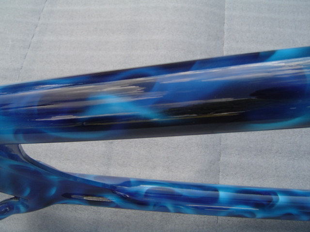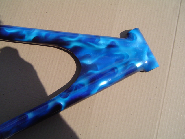 Efren, the chef of New York, New York, asked that his custom bicycle be airbrushed to match his cooking flame.