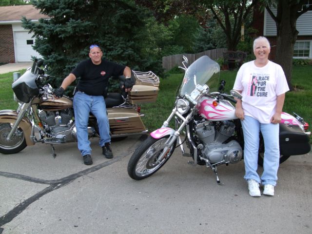 Marcia of Ky , fighter / survivor of breast cancer. Not only a tribute to herself, but all the ladies on her Harley Davidson Sportster.